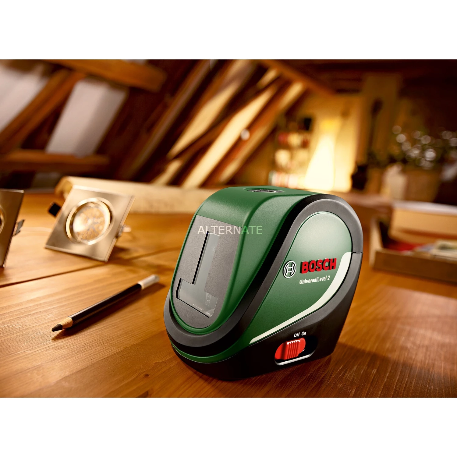 Mit Präzision und hellen, hochwertigen roten Laserdioden sorgt der Kreuzlinienlaser UniversalLevel 2 dafür, dass Projekte, die eine große Genauigkeit erfordern, mühelos erledigt werden. Die drei vorprogrammierten Modi (selbstnivellierendes Laserkreuz, selbstnivellierendes Laserkreuz mit Lotpunkt, Neigungsfunktion) sorgen für eine einfache Ausrichtung und Übertragung. Der Öffnungswinkel von 120° projiziert längere Laserlinien und sorgt für präzise Projektionen auch bei kurzem Arbeitsabstand. Der UniversalLevel 2 bietet eine maximale Arbeitsreichweite von 10 Metern und eignet sich perfekt zum Anbringen von Bildern, Regalen und Tapeten, zum mittigen Platzieren von Lampen sowie zum Anbringen von Treppengeländern oder Gardinenstangen. Außerdem verfügt der UniversalLevel 2 über ein integriertes 1/4“-Stativgewinde und ein passendes 110cm hohes Aluminiumstativ.