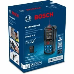 Der Bosch Laser-Entfernungsmesser GLM 50-27 C Professional ist ein schneller, zuverlässiger und äußerst robuster Helfer für raue Baustellen. Sein IP 65-zertifiziertes Design umfasst ein schlagabsorbierendes Gehäuse, mit dem er Stürze aus 1,5 Meter Höhe übersteht, sogar auf harten Beton. Er zeichnet sich außerdem durch einfache Bedienung und schnelle Dokumentation aus. Dank eines schnellen Datentransfers über Bluetooth und der Bosch MeasureOn App ist die Dokumentation nun so einfach wie nie zuvor. Ein intuitives Handling wird durch ein intelligentes User Interface gewährleistet, das viele hilfreiche Merkmale bietet, wie ein hochmodernes Farbdisplay und eine praktische Hilfsfunktion. Der Laser-Entfernungsmesser GLM 50-27 C Professional eignet sich ideal zum Dokumentieren, zum Berechnen des Materialbedarfs, zum Berechnen von Räumen und Wandflächen und zum Positionieren von Befestigungselementen. Er ist die perfekte Lösung für Architekten, Elektriker und viele andere professionelle Anwender. Im Vergleich zum Vorgänger GLM 50 C Professional bietet der GLM 50-27 C Professional eine längere Akkulaufzeit und sowohl ein Akustik- als auch Vibrationssignal zur Bestätigung erfolgreicher Messungen.