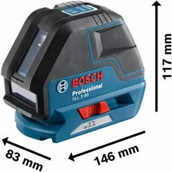Der benutzerfreundliche Bosch Linienlaser GLL 3-50 Professional nivelliert sich in weniger als 4 Sekunden selbst und dient zum schnellen Ausrichten von Linien. Der Laser eignet sich für Anwendungen in Innenräumen, z.B. zur Montage von Regalen oder Fenstern, zur Installation von Abflussrohren oder zum Verlegen von Wandfliesen. Durch eine zweite vertikale Laserlinie ist er auch ideal zum schnellen Quadrieren. Zwei vertikale Laserlinien, eine horizontale Laserlinie und der Lotpunkt ermöglichen viele verschiedene Anwendungen. Das kompakte Design bietet komfortables Handling und gute Kontrolle. Für eine bequeme Positionierung der Laserlinien wird er mit einem Mini-Drehstativ mit höhenverstellbaren Füßen und Feineinstellung der vertikalen Linie geliefert. Der Linienlaser GLL 3-50 Professional bietet Laserlinien mit einem Arbeitsbereich von bis zu 10 Metern, der bei Verwendung des mitgelieferten Laserempfängers LR 2 auf bis zu 50 Meter erweitert werden kann. Die Lotpunktreichweite beträgt bis zu 5 Meter. Dank Staub- und Spritzwasserschutz nach IP 54 ist er außerdem sehr robust.