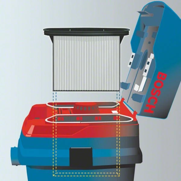 Dieser Bosch Nass-/Trockensauger GAS 25 Professional ist geeignet für die erhöhten Beanspruchungen bei gewerblicher Nutzung, z. B. in Handwerk, Industrie und Werkstätten. Das Gerät ist mit einer elektromagnetischen Filterreinigung ausgestattet, die den Faltenfilter von anhaftendem Staub befreit. Der Nass-/Trockensauger GAS 25 Professional kann sowohl feine Stäube (Rußstäube), als auch Flüssigkeiten aufsaugen.