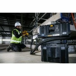 Das DEWALT XR FLEXVOLT Maschinen-Sortiment bietet Leistung für die schwersten Anwendungen – ohne Kabel! Die innovative, bürstenlose Motor-Technologie des Akku- Nass-/Trockensaugers DCV586MK sorgt für höhere Leistung, kompaktere Abmessungen und höhere Lebensdauer. Dank des zwei-Filter-System System mit automatischer Filterreinigung steht jederzeit eine konstant hohe Saugleistung zur Verfügung. Er ist Wireless tool control ready, was eine kabellose Sauger-Aktivierung per Fernbedienung oder eine automatische Aktivierung bei Akku Werkzeugen mit „Wireless tool control“ Funktion ermöglicht. Der DVC586MK ist einfach mit allen Produkten aus dem T STAK-Boxen und Zubehörprogramm zu kombinieren.