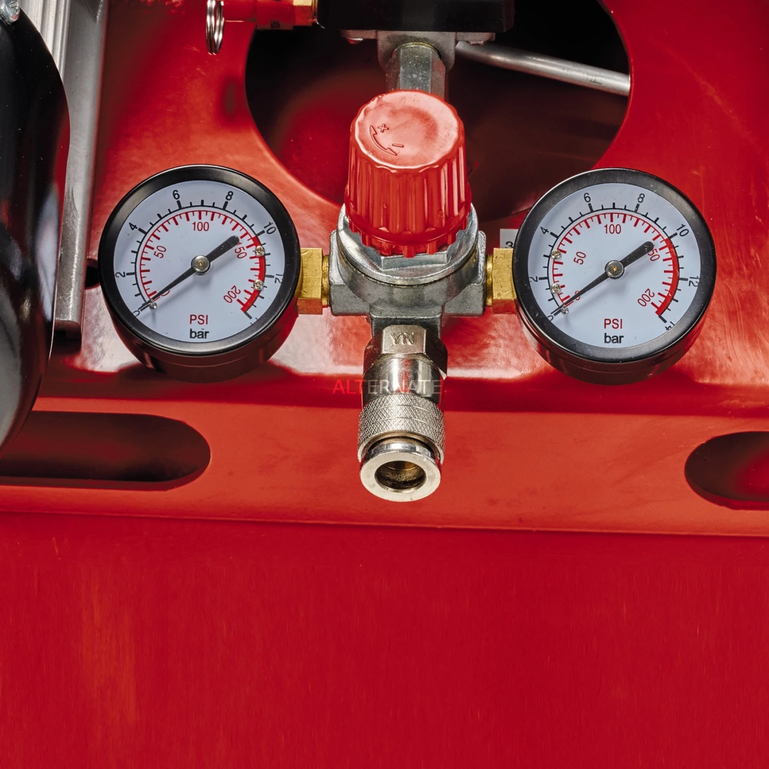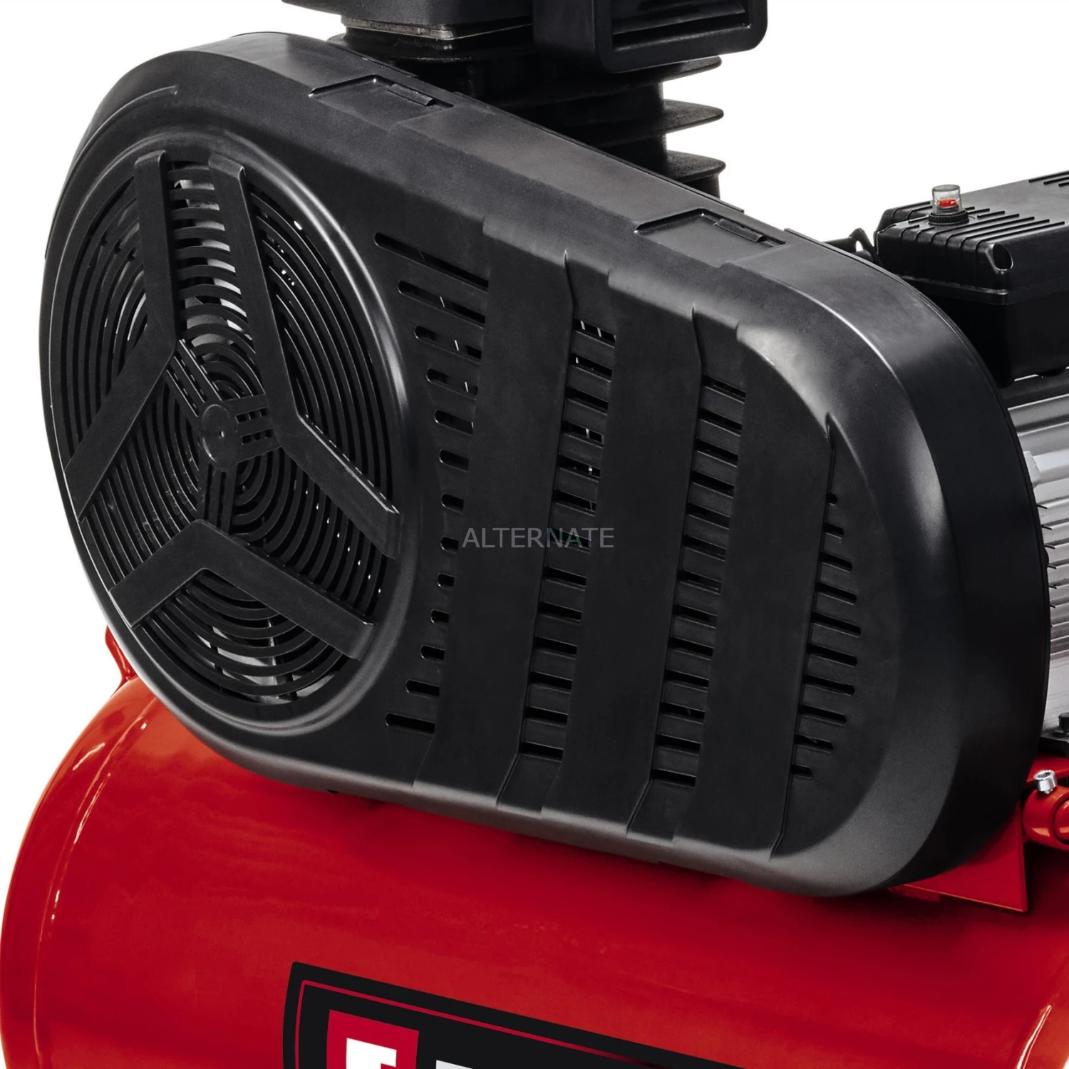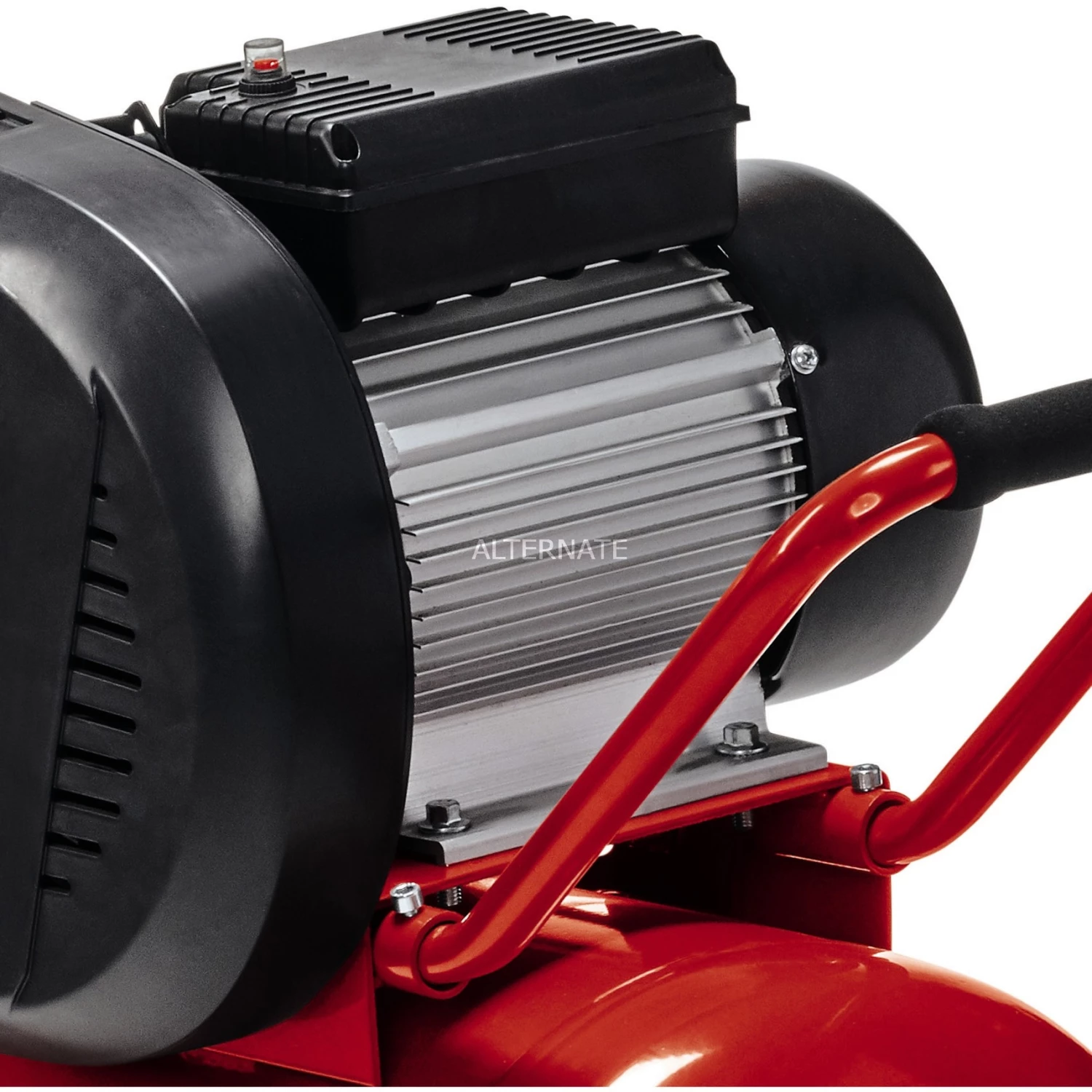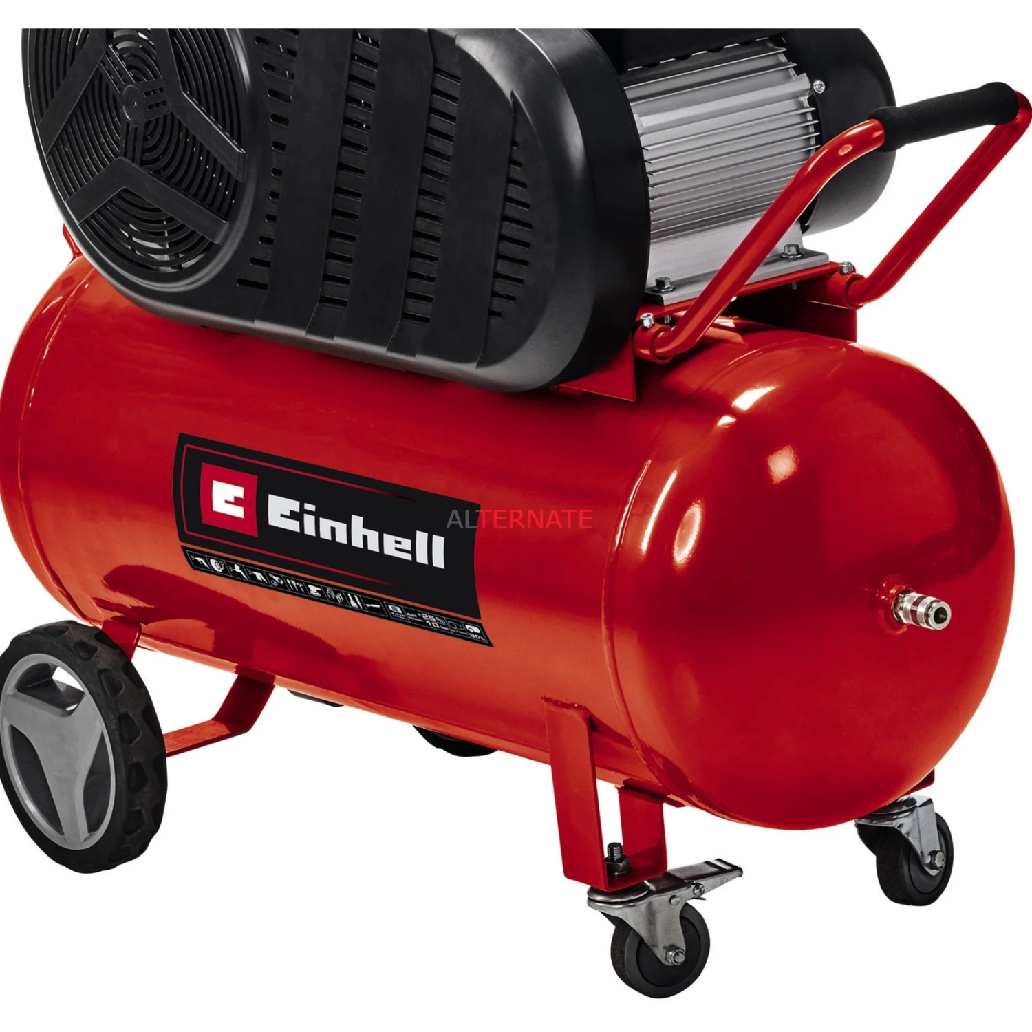 Der TE-AC 430/90/10 von Einhell ist ein leistungsstarker Kompressor mit Keilriemenantrieb, der Riemenantrieb sorgt für eine niedrige Drehzahl und einen ruhigen Betrieb. Mit dem Kompressor lässt sich eine völlig neue Klasse an Werkzeugen erschließen. Mit den passenden Druckluft-Werkzeugen lassen sich Lacke und Farben auftragen, mit Ölen großflächig oder gezielt Hölzer imprägnieren, auch Ausblas- oder Sandstrahlarbeiten lassen sich damit in der heimischen Werkstatt erledigen. Er pumpt außerdemdem mühelos Auto-, Motorrad- und Fahrradreifen, Bälle oder Luftmatratzen auf. Er ermöglicht viele Anwendungen bis maximal 10 bar, regulierbar mit dem Druckminderer. Der 90 Liter-Tank bietet ausreichend Luftreserven für ausgedehnte Einsätze. Die Ölschmierung sichert die Langlebigkeit des Kompressors. Das Rückschlag- und das Sicherheitsventil dienen der erhöhten Anwendungssicherheit, und eine Entwässerungsschraube ermöglicht die komfortable Wartung des Kompressors. Er verfügt über ein Manometer und eine Schnellkupplung für geregelten Arbeitsdruck sowie ein großes Manometer für den ungeregelten Kesseldruck. Die zwei Räder, zwei Lenkrollen mit Feststellbremse und der Transportbügel machen den Kompressor TE-AC 430/90/10 in der Werkstatt leicht manövrierbar.