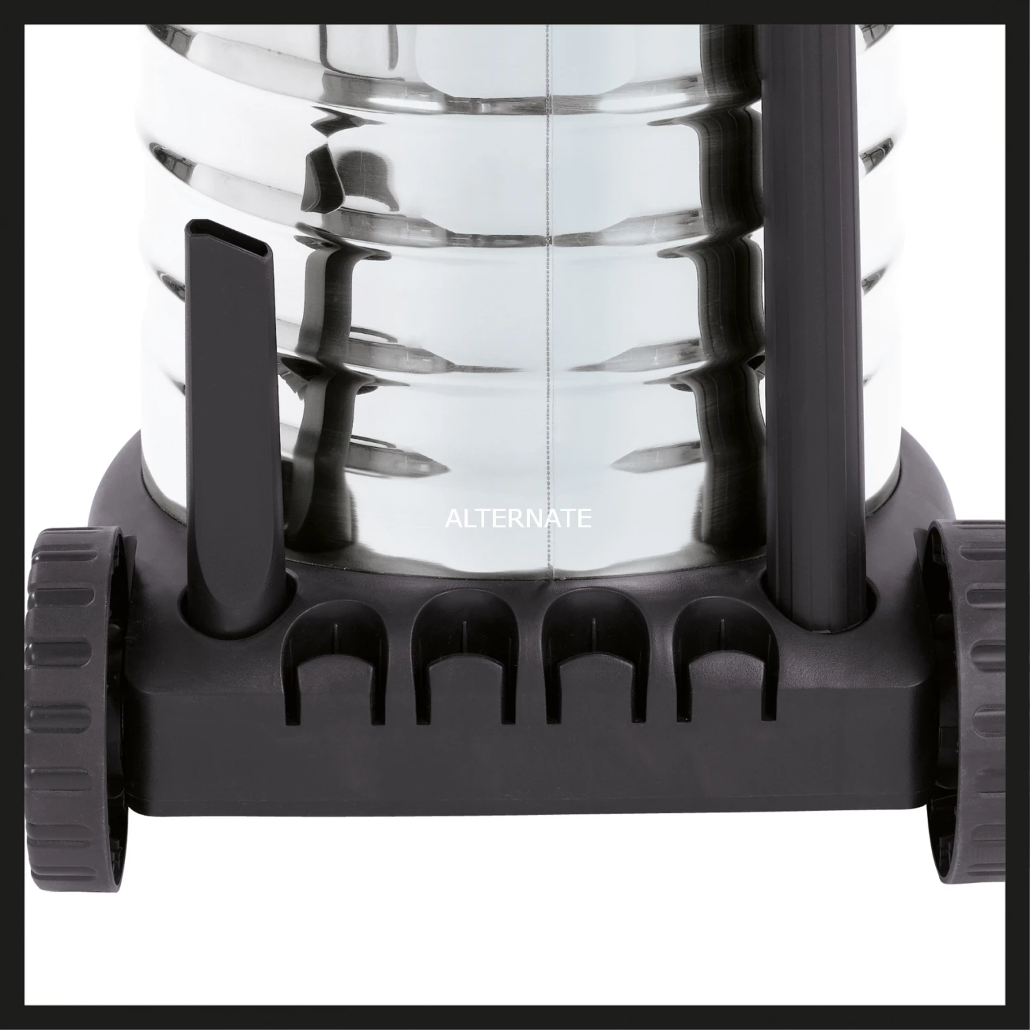 Der Nass-Trockensauger TC-VC 1930 SA von Einhell ist ein praktisches Hilfsmittel für den ambitionierten Heimwerker, das bei Reinigungsaufgaben in Haus, Werkstatt und KFZ gute Dienste leistet. Der 30 Liter fassende Edelstahlbehälter verfügt über eine Wasserablassschraube, so dass sich Schmutz und Flüssigkeiten schnell und bequem entsorgen lassen. Ein praktischer Blasanschluss ist ebenfalls vorhanden. Die integrierte Steckdose mit Automatikfunktion und Ausschaltverzögerung ermöglicht den Einsatz als Absauganlage für Elektrowerkzeuge. Beim Absaugen von Staub und Spänen leistet der Faltenfilter gute Arbeit, und beim Nassaugen schützt ein Schaumstofffilter den Motor vor Verunreinigung. Dank Kabelhalterung und Zubehörhalterung lassen sich alle Teile schnell und ordentlich direkt am Gerät aufbewahren. Für komfortable Handhabung und Mobilität sorgen ein Tragegriff, zwei große Räder und zwei Lenkrollen. Der TC-VC 1930 SA ist mit einem 2,5 m langen Saugschlauch, einem dreiteiligen Kunststoff-Saugrohr, einer großen Saugdüse mit Kombieinsatz zum Nass-/Trockenbodensaugen sowie einer Fugendüse ausgerüstet.