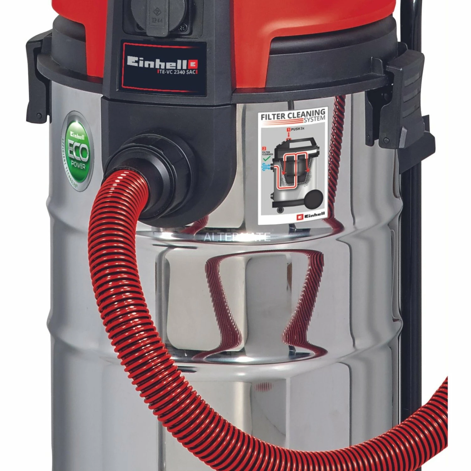 Der Einhell Nass-Trockensauger TE-VC 2240 SAC eignet mit seinem innovativen Filterreinigungssystem für Feinstaub, groben Schmutz und feinste Mikropartikel wie Gips-/Bohrstaub durch. Der rostfreie Edelstahlbehälter fasst 40 Liter. Schwer zugängliche Stellen können mit dem Blasanschluss ausgeblasen werden. Handlich wird der Einsatz durch die großen Räder & Rollen, Zubehörhalterung sowie Kabelaufwicklung. Wasserablassschraube und Fehlluftregler sind vorhanden. Das Teleskoprohr ist aus Edelstahl, der Plastiksaugschlauch mit 3 m extralang. Praktisch ist die automatische Gerätesteckdose.