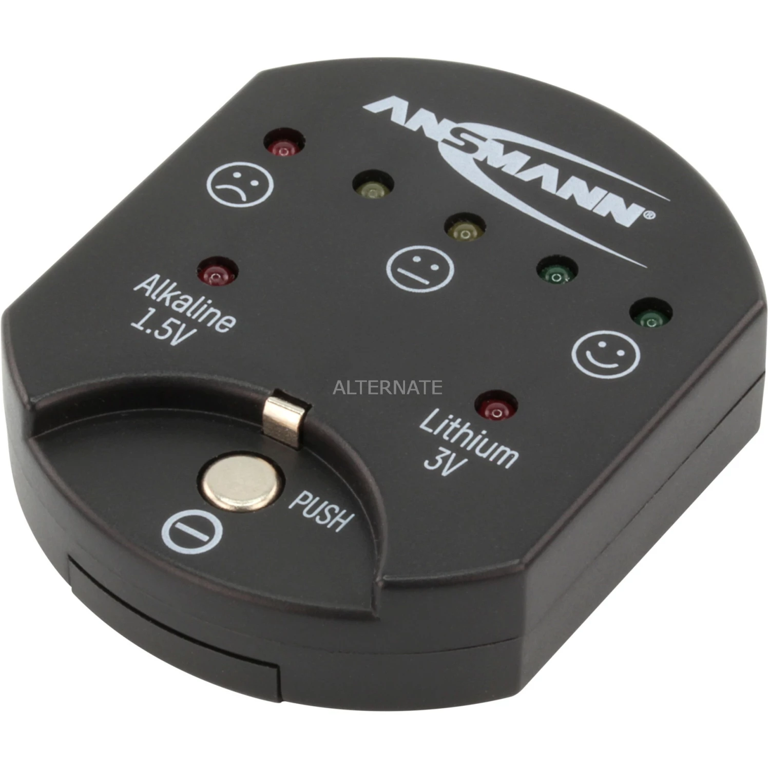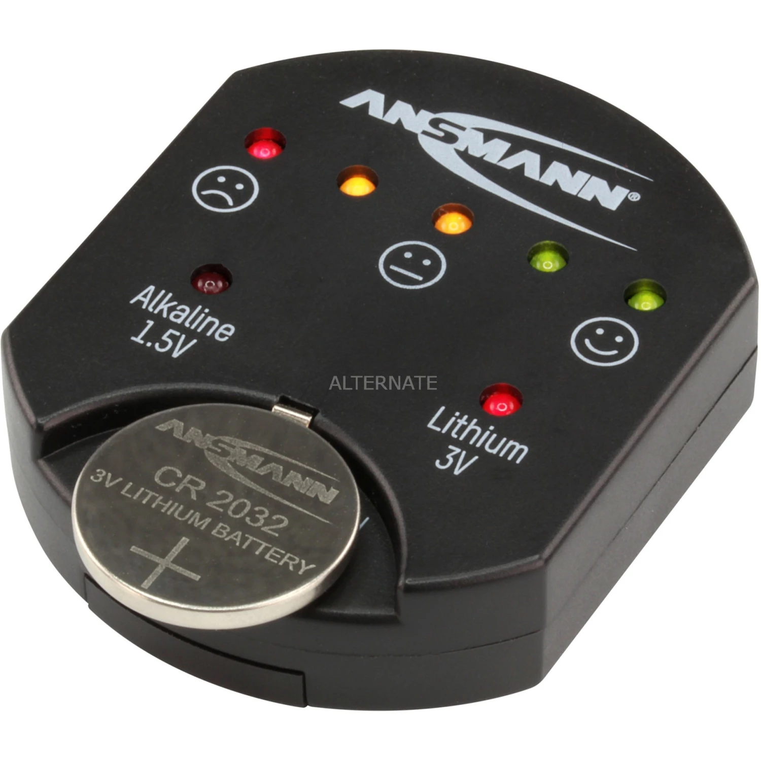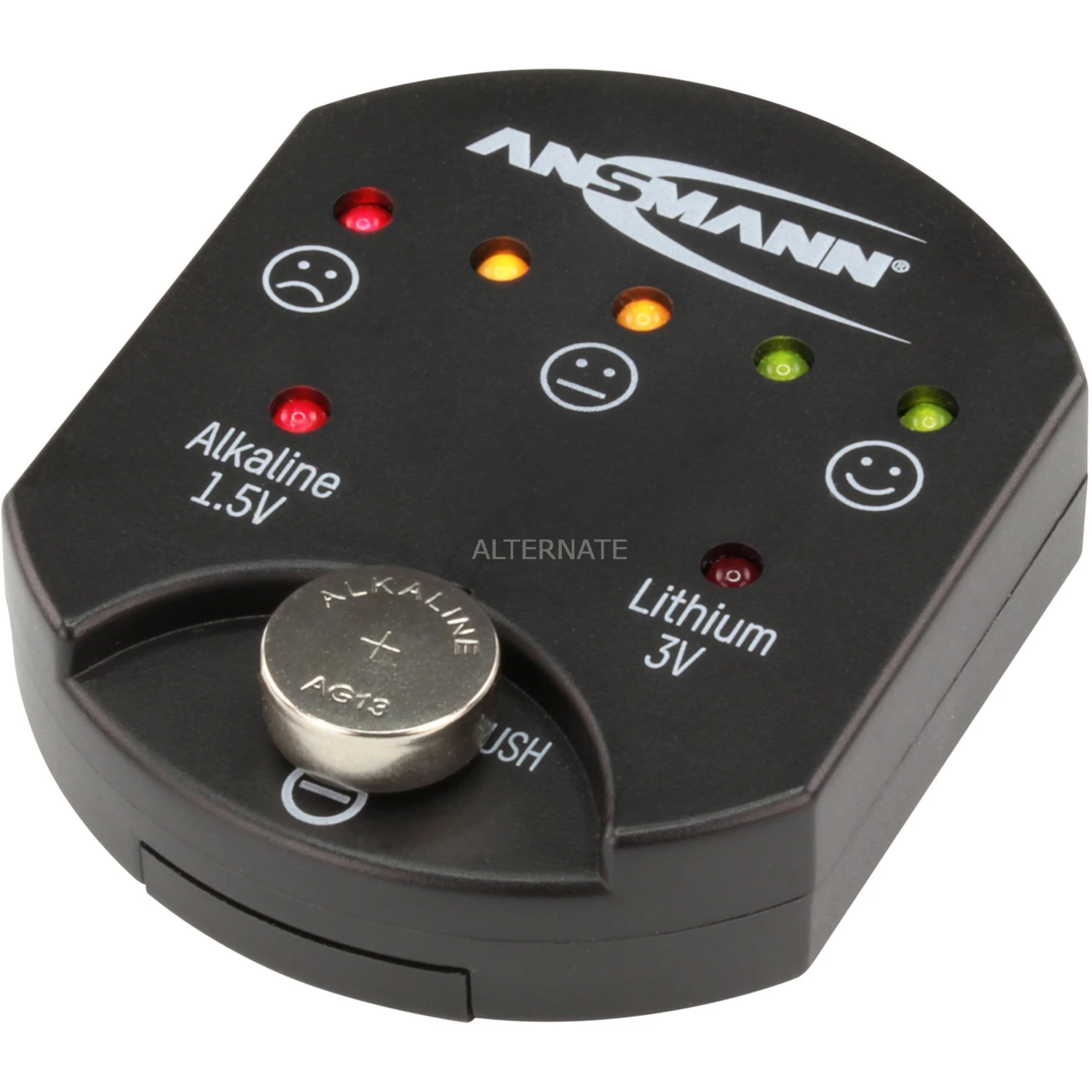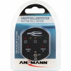 Der Knopfzellentester 1900-0035 von Ansmann ist ein kompaktes und handliches Testgerät für Alkaline und Lithium Knopfzellen. Der Tester erkennt automatisch die Spannung und zeigt sie zusammen mit der Zellkapazität über LEDs an. So erkennt man ganz genau, wann Knopfzellen noch genutzt werden können oder wann sie entsorgt werden sollten. Durch Auflegen und Andrücken der Knopfzelle erkennt der Tester automatisch die Spannung (Alkaline oder Lithium) und zeigt diese über die entsprechende LED an. Die Kapazitätsanzeige wird über über 5 LEDs angezeigt. Die aktuelle Kapazität der Zelle wird unter Last getestet und durch die LEDs (rot – orange – grün) angezeigt.