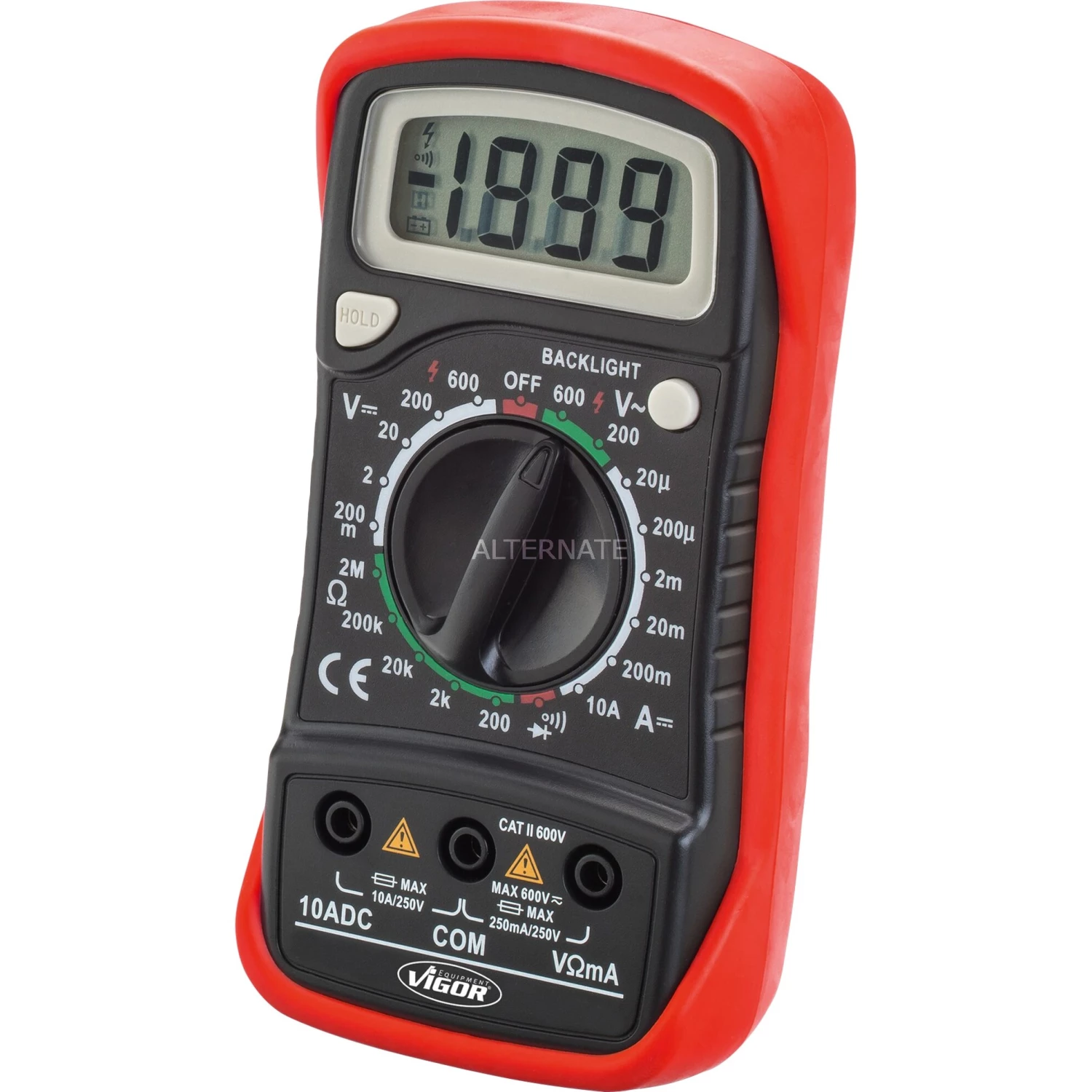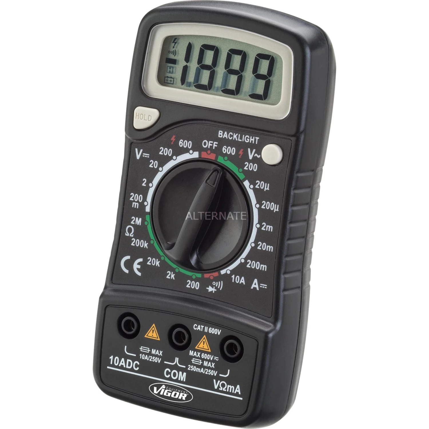 Das kompakte handliche Digital Multimeter V4324 von Vigor ist ein batteriebetriebenes, tragbares digitales Multimeter mit 3 1/2 -stelligem Display zur Messung von Gleich- und Wechselspannung, Gleichstrom und Widerstand sowie zur Dioden-Durchgangsprüfung. Die kontrastreiche, einzeilige LCD-Anzeige ist dank Hintergrundbeleuchtung stets gut ablesbar. Die automatische Überlauf- und Polaritätsanzeige vermeidet Messfehler.