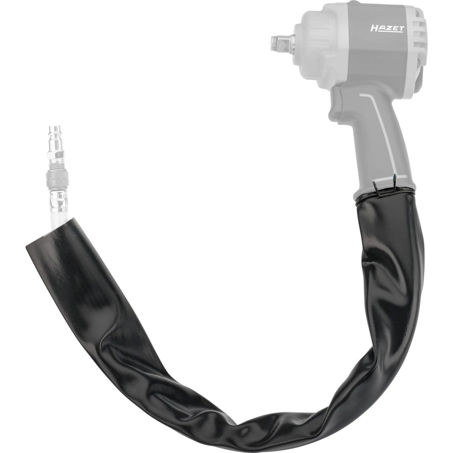 Der Flüsterschlauch 9040-012 von HAZET dient der Geräuschreduzierung der HAZET Turbo Twin Schlagschrauber. Er verfügt über einen integrierten Kupplungsstecker und eine Federklemmung zur Befestigung des Schlauchs am Griff.