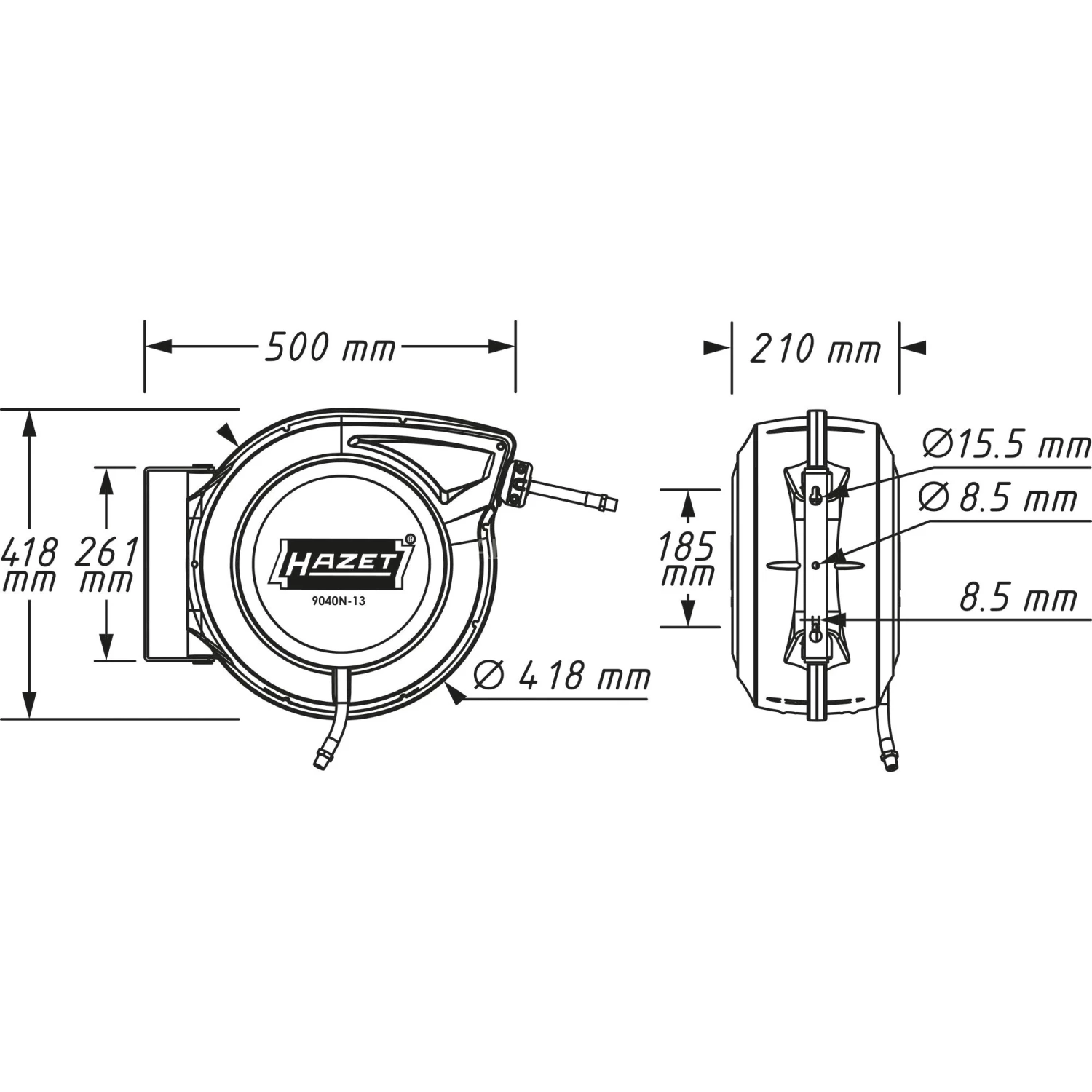 Der automatische Schlauchaufroller 9040N-13 von HAZET schafft Ordnung in der Werkstatt. Wo kein Schlauch herumliegt, ist auch die Unfallgefahr reduziert. Der Schlauchaufroller mit 100cm Anschlussschlauch bietet an jedem gewünschten Punkt durch die „Stop at any point“-Funktion einen Schlauchstopp, und durch die automatische Führung ein sauberes Aufwickeln nach der Arbeit. Das gebremste Aufwickeln vermeidet dabei Unfallgefahr. Der 15 Meter lange Hybrid Polymer-Schlauch eignet sich für Druckluft oder Wasser, mit einem max. Betriebsdruck von 20 bar. Das geschlossene Spezialkunststoff-Gehäuse des Aufrollers mit schwenkbarem Haltebügel aus Metall eignet sich zur individuellen Montage an jedem Arbeitsplatz und erfüllt alle einschlägigen Bestimmungen der EG-Richtlinie Maschinen 2006/42/EG.