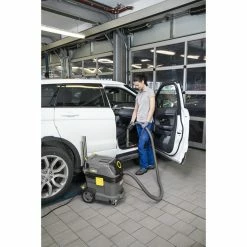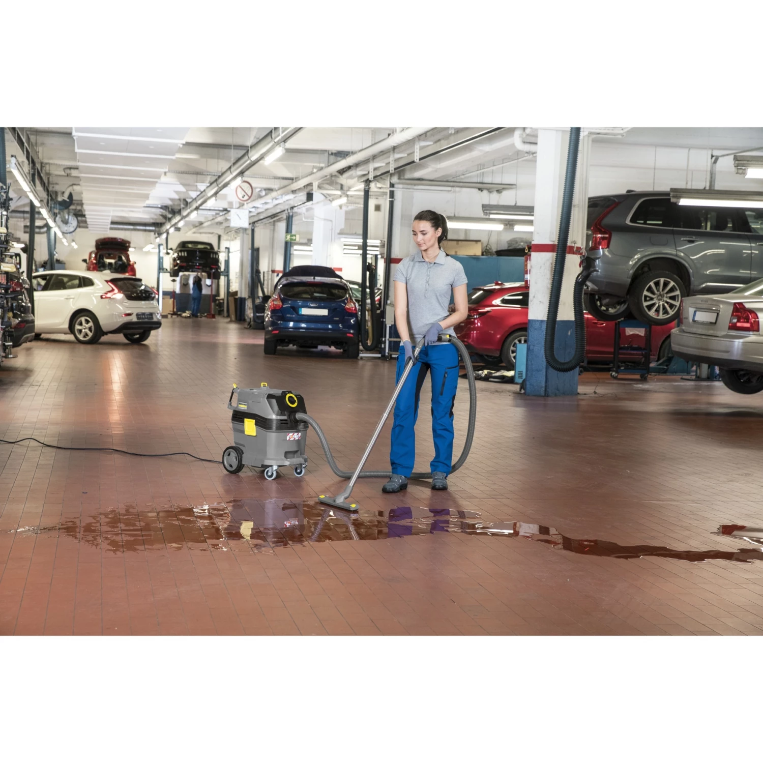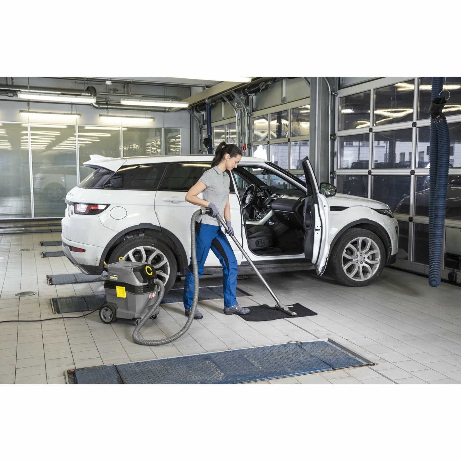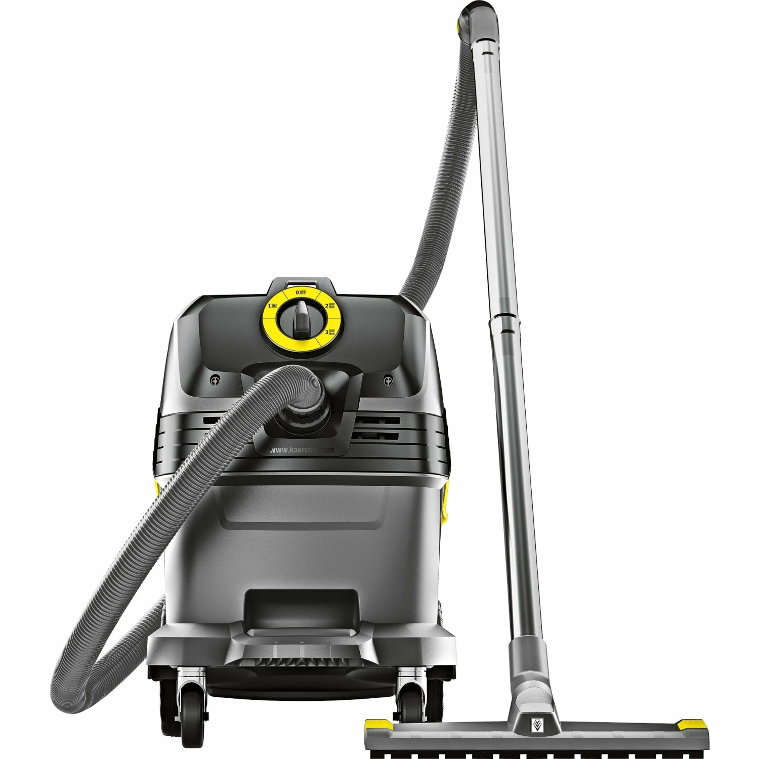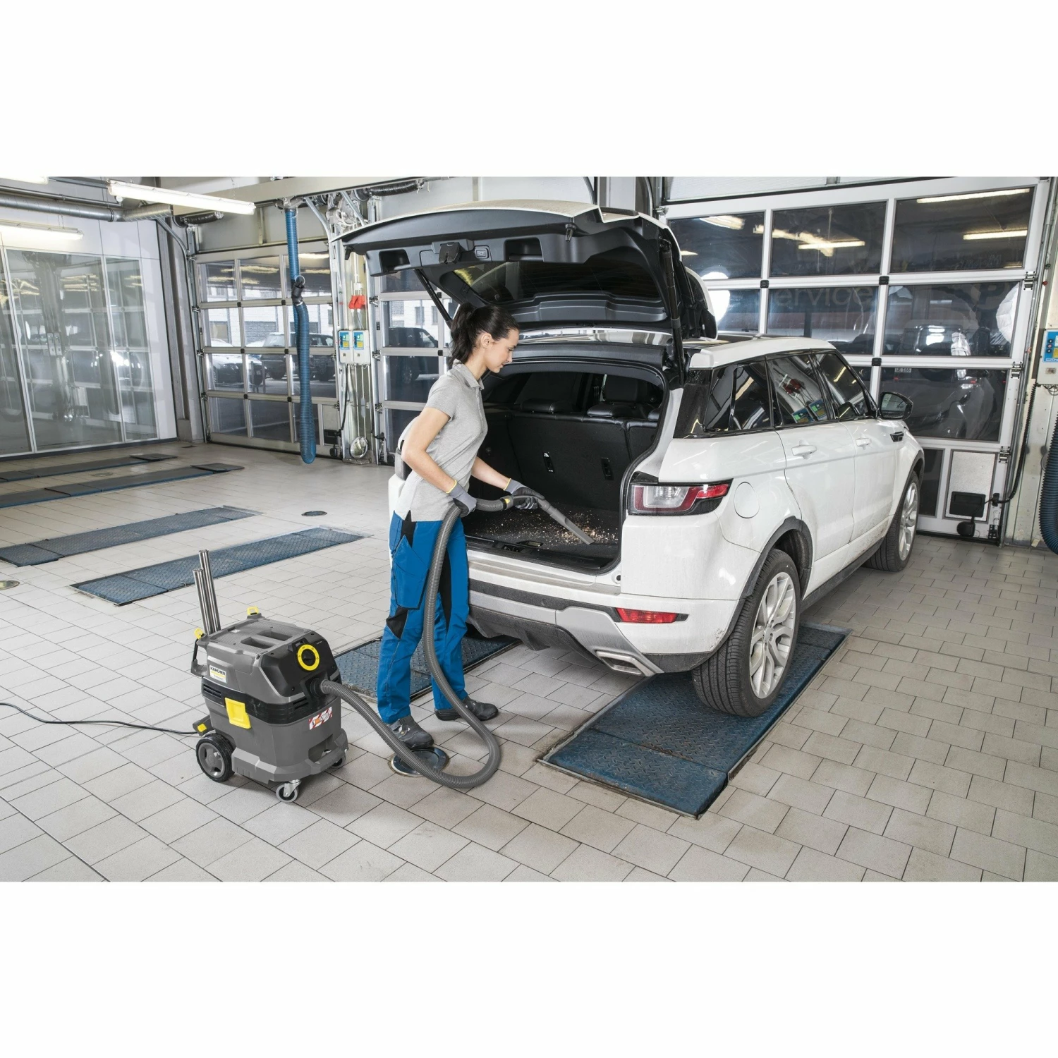 Zur effektiven und schnellen Reinigung von Maschinen, Fahrzeugen, Werkstätten und Baustellen: Der Kärcher Nass- und Trockensauger NT 30/1 Tact ist ein Universal-Gerät für professionelle Anwender aus den unterschiedlichsten Branchen. Der kompakte Allessauger überzeugt dank dem automatischen Filterabreinigungssystem Tact und dem feuchtigkeitsresistenten PES-Flachfaltenfilter bei der staubfreien Beseitigung großer Mengen Feinstaub über lange Arbeitsintervalle hinweg. Schmutz und Flüssigkeiten werden zuverlässig in einem robusten 30 Liter großen Behälter gesammelt, der über einen Bumper und stabile Metalllenkrollen verfügt. Das einfache Handling und die durch den neuen, zentralen Drehschalter kinderleichte Bedienung des Geräts, erleichtern die Arbeit enorm. Das Gerät ist komplett mit neu entwickeltem und stark verbessertem Zubehör ausgestattet, das sich in der integrierten Saugschlauch- und Zubehöraufnahme bequem verstauen lässt. Auf dem flachen Gerätekopf können Werkzeuge und Boxen dank gummierten Flächen und Verzurrmöglichkeiten verrutschsicher abgestellt oder sogar fixiert werden. Stabile Lenkrollen aus Metall ermöglichen gute Manövrierfähigkeit und uneingeschränkte Baustellengängigkeit Der robuste Behälter schützt das Gerät vor Stößen und Schlägen. Mit dem entnehmbaren Filtergehäuse lässt sich der Filter staubfrei entnehmen und wieder einsetzen. Das falsche Einlegen des Flachfaltenfilters wird unmöglich gemacht.