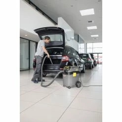 Der hochwertige Nass-/Trockensauger NT 40/1 Ap L von Kärcher mit seinen 40 Litern Fassungsvermögen des Behälters und halbautomatischer Filterabreinigung, die im Zusammenspiel mit der herausragenden Saugleistung sogar dann die Entfernung von Feinstäuben ermöglicht, wenn ohne Filtertüte gearbeitet wird, ist vielfältig einsetzbar, ob zur Beseitigung von Grobschmutz und Flüssigkeiten, zum Absaugen von Maschinen und Anlagen oder beispielsweise auch zur Fahrzeuginnenreinigung, und gespickt mit durchdachten Details zur Aufbewahrung des komplett neu entwickelten Zubehörs. Unter anderem wurde sein Kopf so flach entworfen, dass mühelos ein Werkzeugkoffer darauf abgestellt und dank der Verzurrmöglichkeiten auch befestigt werden kann. Darüber hinaus überzeugt der NT 40/1 Ap L mit seiner sehr einfachen Bedienbarkeit. Dabei werden alle wichtigen Funktionen direkt über einen zentralen Drehschalter ausgewählt und eingestellt.
