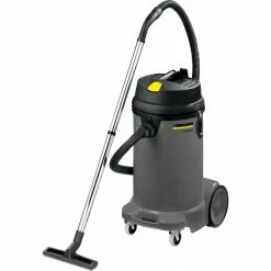 Der NT 48/1 hat ein Behältervolumen von 48 Litern. Das Gerät ist ausgestattet mit einem integrierten Netzkabelhaken am Turbinenkopf, einer Zubehöraufnahme für Saugrohre sowie einer Boden- und Fugendüse am Behälter. Der große Patronenfilter mit einer Filterfläche von 0,8 m² sorgt für eine konstant hohe Saugleistung des Gerätes. Das zuverlässige Schwimmersystem sorgt für eine rechtzeitige Unterbrechung des Luftstromes bei allen aufgesaugten Flüssigkeiten. Durch die große Ablagefläche auf dem Gehäusekopf lassen sich Werkzeuge oder andere Utensilien jederzeit griffbereit unterbringen. Ausgestattet ist der NT 48/1 zusätzlich mit einem Ablassschlauch und einem robusten Fahrwerk mit großen Bockrollen und Lenkrollen. Eine Feststellbremse und integrierte Griffmulden am Behälter ermöglichen einen einfachen Transport.