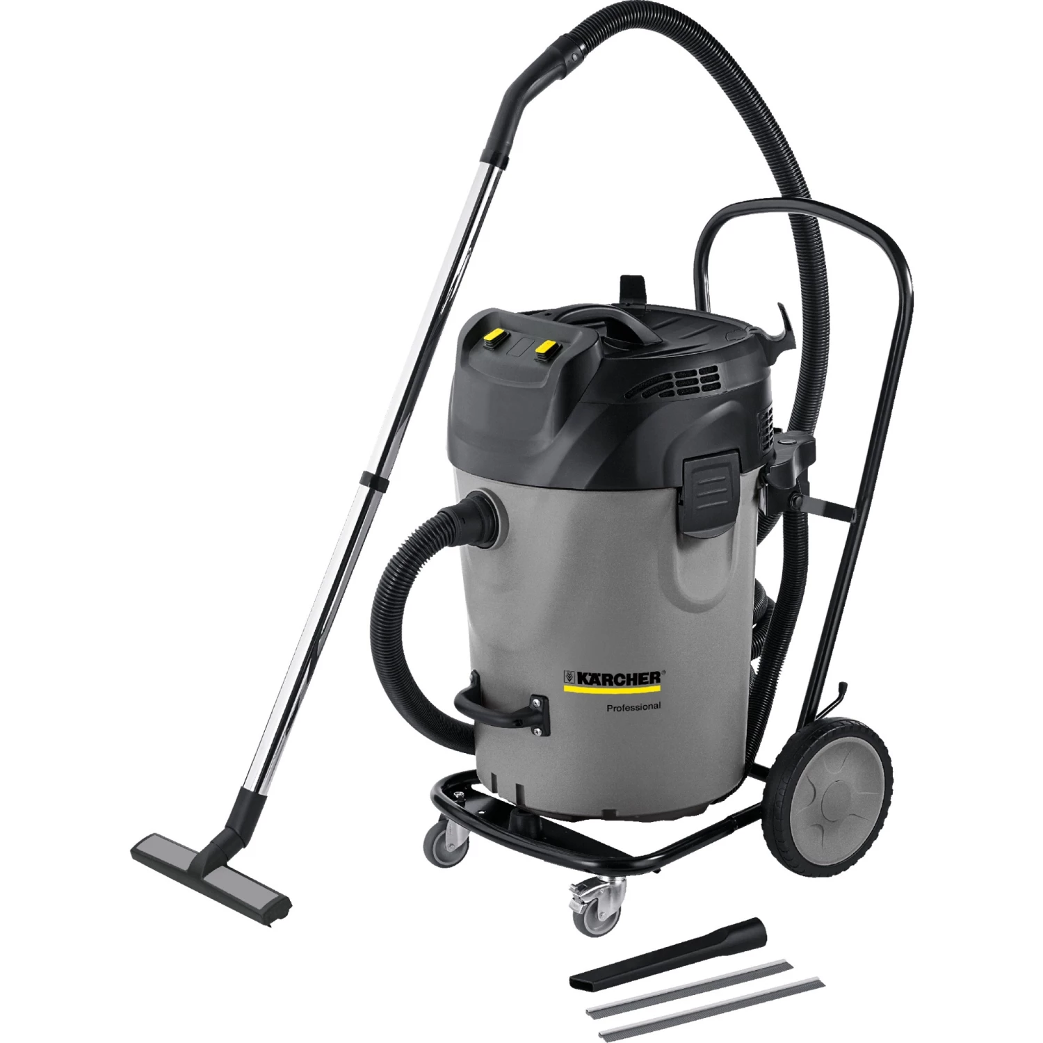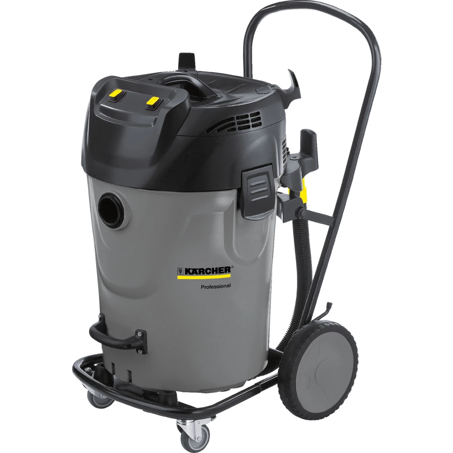 Der NT 70/2 Tc Nass-/Trockensauger besticht durch seine starke Saugleistung und die bewährte Kärcher-Qualität zum günstigen Preis. Zeitsparend und rückenschonend – das Kippfahrgestell der NT 70-Reihe macht die Entleerung der großen Behälter zum Kinderspiel: Entleerungs-Ort ansteuern, Handgriff anheben und Schmutz ade. Über den Ablassschlauch ist der Behälter leicht zu entleeren. Ein klarer Vorteil angesichts des sehr großen Behältervolumens von 70 Litern. Dank des ergonomischen Schubbügels kann der NT 70 an die Arbeitsstelle gerollt werden. Der robuste Bumper schützt das Gerät vor Stößen und Schlägen.