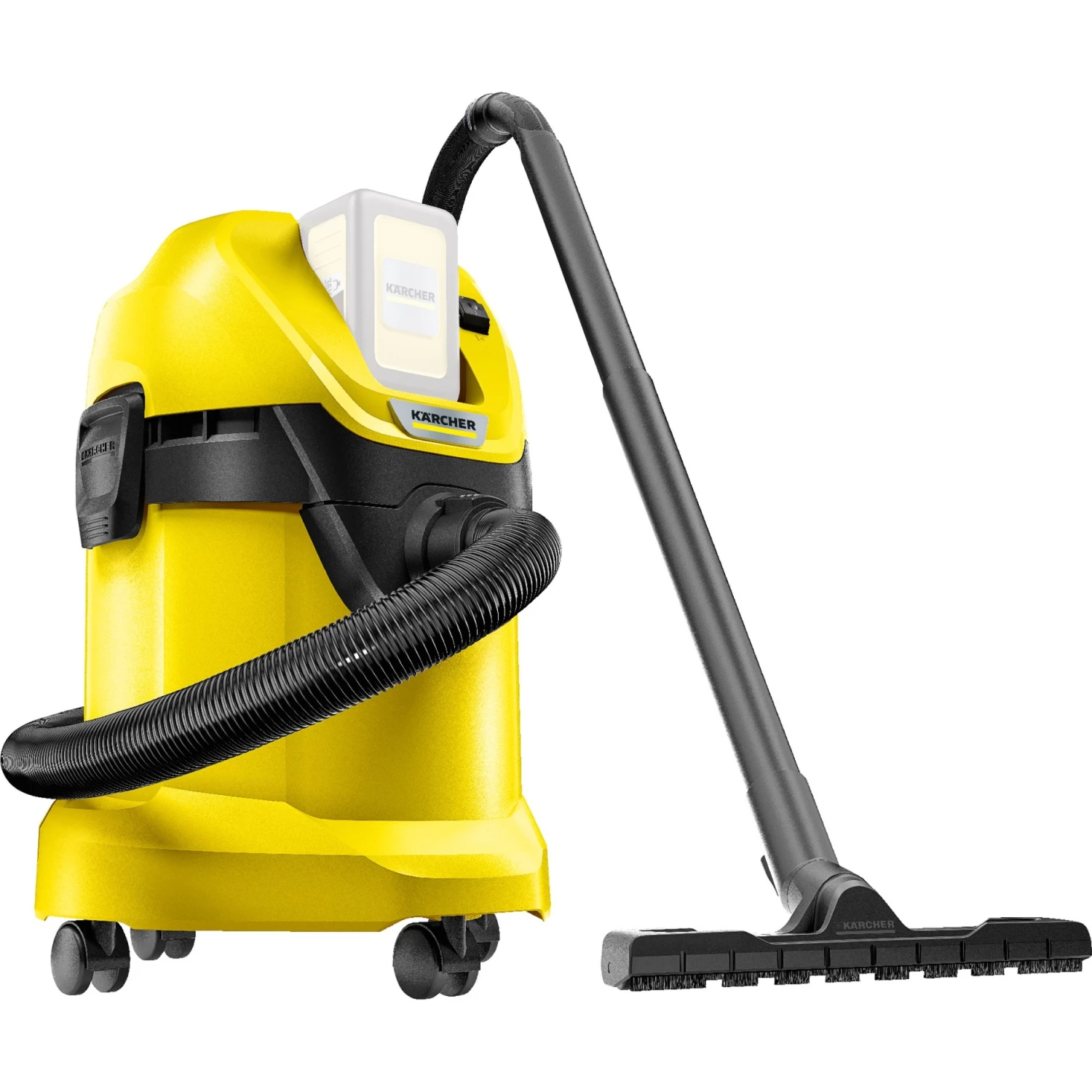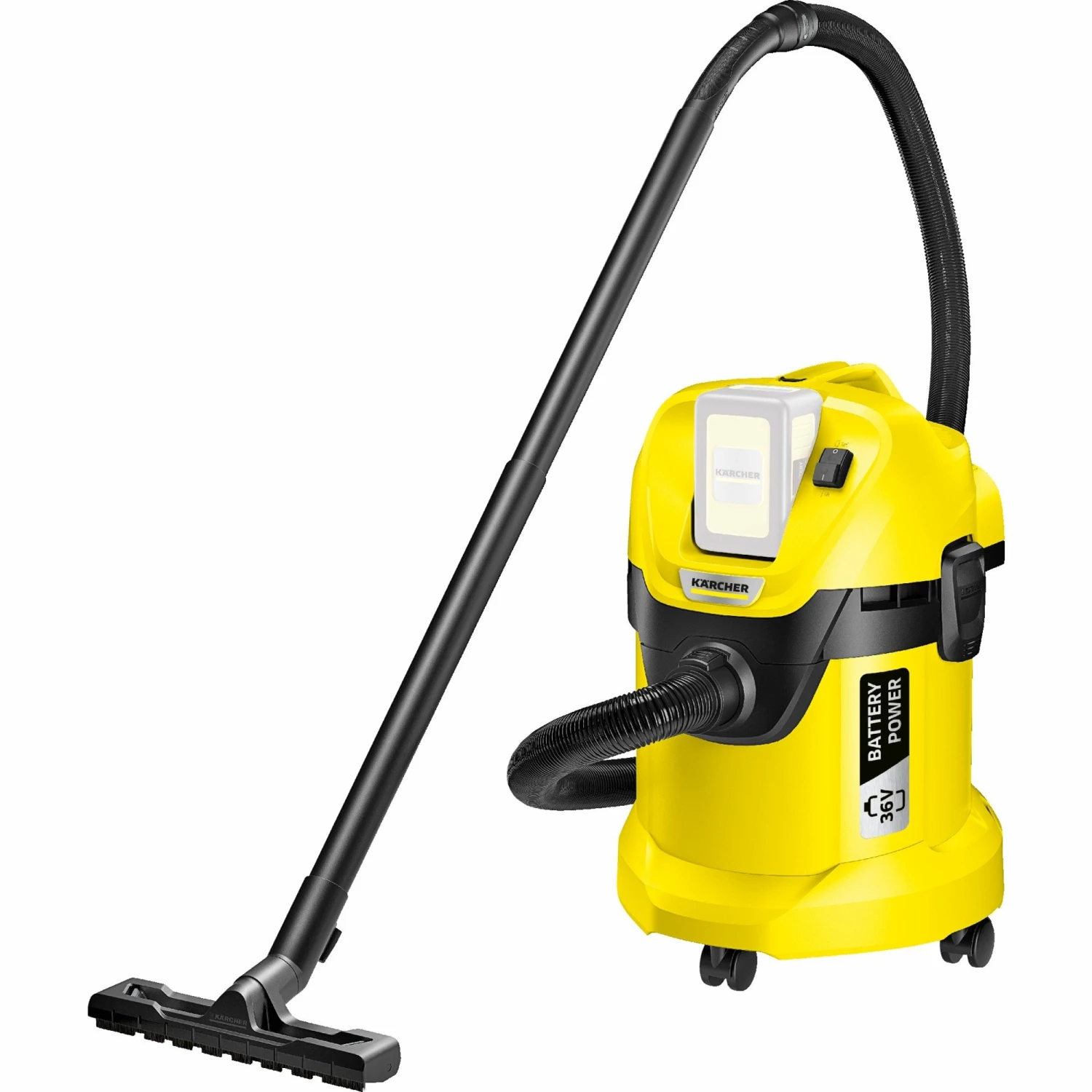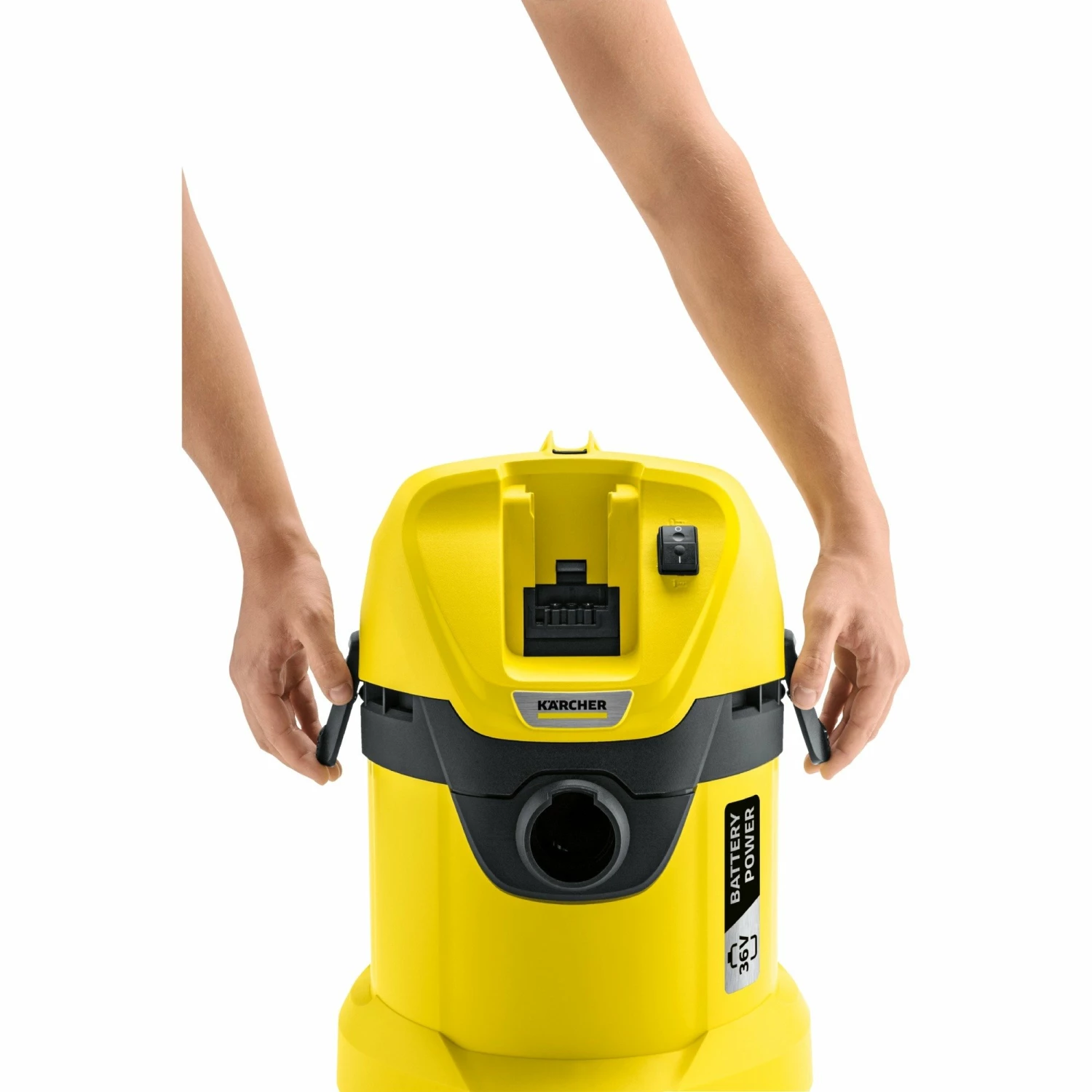 Der WD 3-Battery funktioniert genauso wie ein Mehrzweck-Staubsauger mit Kabel, er muss jedoch nicht an das Stromnetz angeschlossen werden. Die Akkulaufzeit beträgt je nach Akku 15 bis 30 Minuten (Akku nicht im Lieferumfang enthalten). Der flexible, kabellose Universalstaubsauger verfügt außerdem über einen robusten und schlagfesten Kunststoffbehälter mit einem Fassungsvermögen von 17 Litern sowie einen Patronenfilter zum einfachen Absaugen trockener und nasser Verschmutzungen, ohne den Filter wechseln zu müssen. Der strömungsoptimierte Saugschlauch und die Smart Clips-Bodendüse mit Mischeinsatz sorgen für eine optimale Schmutzaufnahme und sorgen für perfekte Sauberkeit. Ein weiteres praktisches Detail ist der abnehmbare Griff, mit dem Zubehör direkt am Saugschlauch befestigt werden kann. Die praktische Parkposition ermöglicht das bequeme Abstellen des Saugrohrs und der Bodendüse bei Arbeitsunterbrechung. Der WD 3 Battery macht die Reinigung dank zusätzlicher Funktionen wie Gebläsefunktion, Pull & Push-Verriegelungssystem, ergonomischem Tragegriff und Zubehör-Aufbewahrungslösung zum Vergnügen. Und dank der Kompatibilität mit der 36-V-Batterieplattform können auch Batterien anderer 36-V-Batteriegeräte mit dem WD 3-Battery verwendet werden.