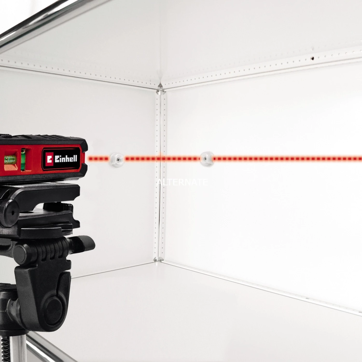 Das Einhell Lasernivelliergerät TC-LL 1 ermöglicht eine einfache Projektion eines Laserpunkts oder einer Laserlinie auf Wände oder Werkstücke. Der Laser hilft dabei, Bordüren, Tapeten, Bilder und andere Objekte exakt und genau auszurichten. Das Lasernivelliergerät hat einen Arbeitsbereich von fünf Metern (Linie) bzw. 20 Metern (Punkt), ist auch als herkömmliche Wasserwaage einsetzbar und bietet eine hohe Genauigkeit bei nur 0,5 Millimeter Abweichung pro Meter. So lassen sich exakte Laserpunkte setzen, aber auch präzise Linien. Mit dem TC-LL 1 ist es kein Problem, genaue Installationslinien zu projizieren. Dank der integrierten Libellen und der flexiblen Wandhalterung ist eine exakte Ausrichtung des Lasers möglich, ob horizontal, vertikal oder auch diagonal. Der Punktlaser bietet zudem eine exakte Höhenübertragung im Raum. Das integrierte 1/4″ Gewinde in der Wandhalterung ermöglicht auch die Verwendung eines handelsüblichen Stativs. Durch den Softgrip lässt sich das Lasernivelliergerät TC-LL 1 rutschsicher und komfortabel handhaben.