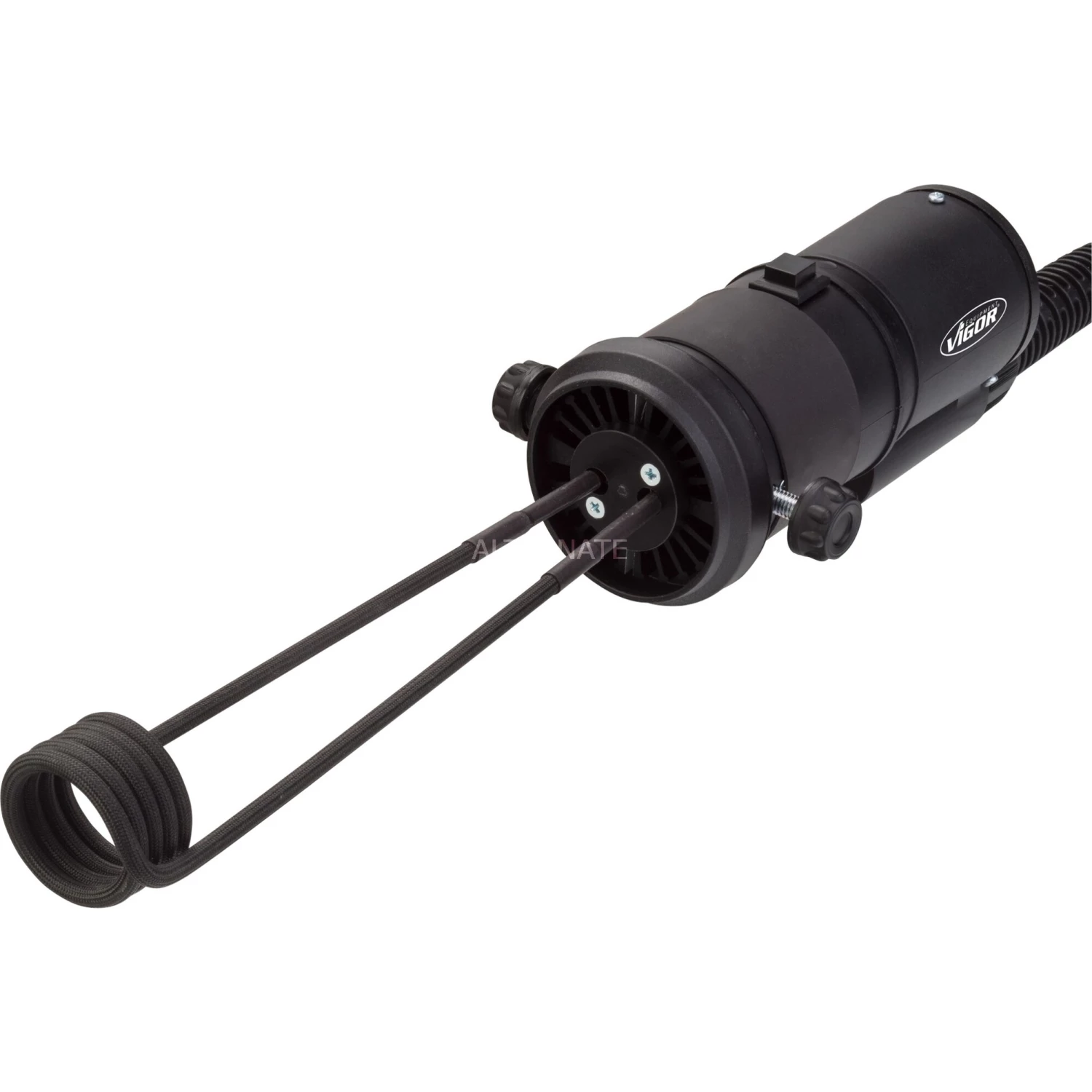 Das Induktionsheizgerät V4891 von VIGOR eignet sich zum schnellen, einfachen Entfernen von festgerosteten Teilen an Fahrzeugen durch punktgenaues Erhitzen. Dank modernster Mikroprozessor-Technologie wirkt die exakt platzierte Erwärmung innerhalb weniger Sekunden. Die gesteuerte Lüfterkühlung bei gleichzeitig hohem Wirkungsgrad durch zwei Lüfter vermeidet dabei eine Überhitzung. Durch umfangreiches serienmäßiges und weiteres optional erhältliches Zubehör ist das Induktionsheizgerät V4891 vielseitig einsetzbar im Karosserie- und Nutzfahrzeugbereich. Die beiden mitgelieferten starren Spulen sind speziell zur Erwärmung von Rohren, Bolzen und Profilen verschiedener Durchmesser geeignet, die flexible Spule zum Lösen von schwer zugänglichen Teilen durch den Einsatz von speziellem Wickeldraht, und die Flachspule zur Erwärmung von Karosserie und Blechflächen, sie vereinfacht das Abziehen von Aufklebern, Dichtstoffen und ähnlichen Materialien.