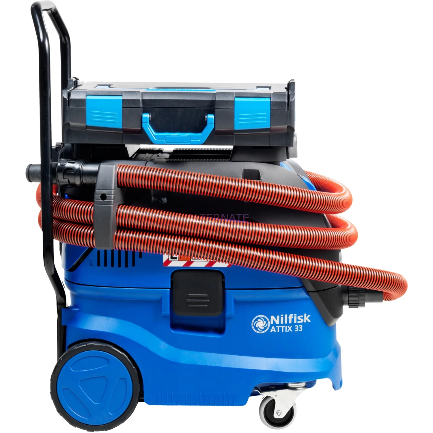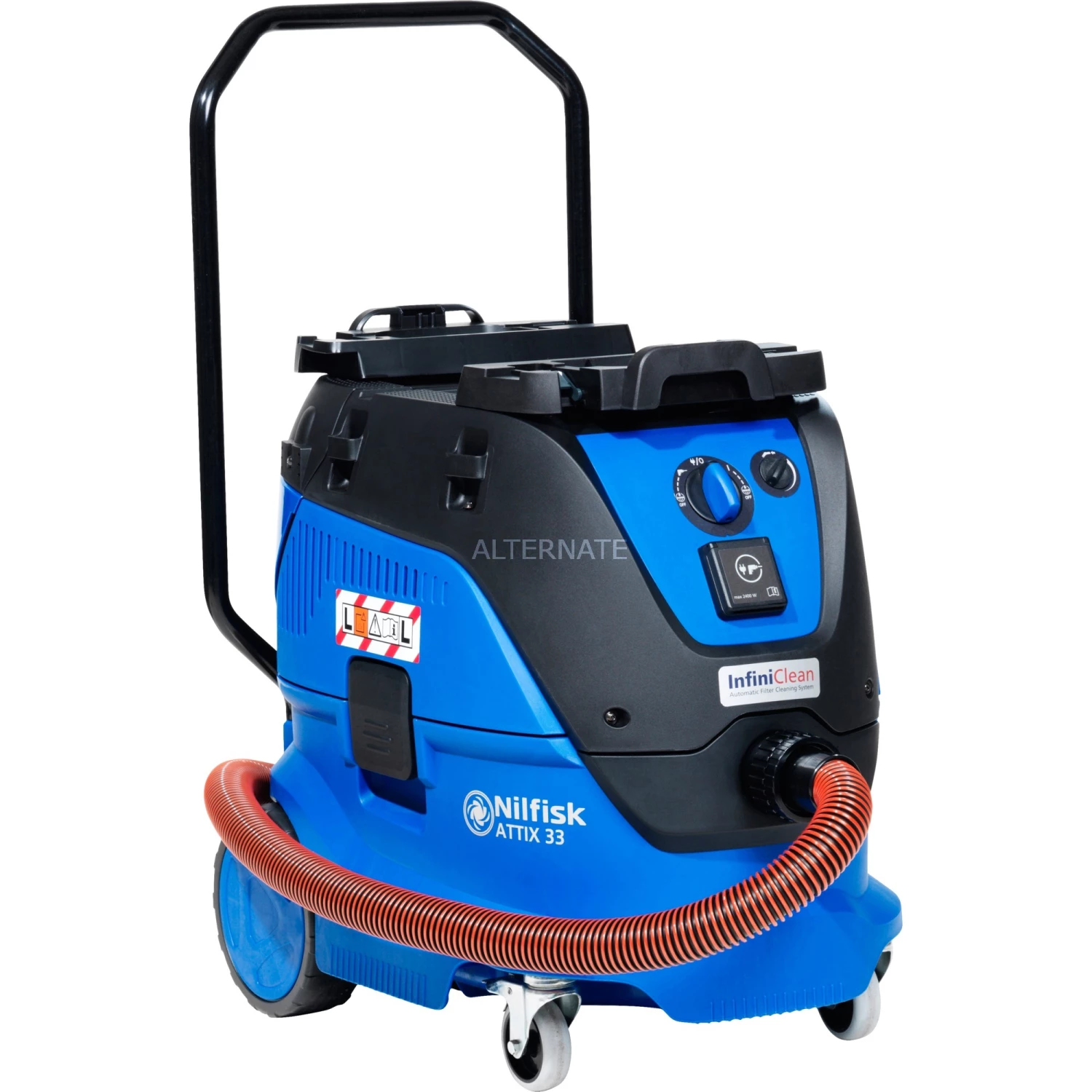 Die neuen Entstauber der ATTIX 33 Baureihe setzen neue MaĂźstäbe im Nilfisk Nass-/Trockensauger Portfolio in puncto Funktion und Leistungsfähigkeit. Ein innovatives Filtersystem, optimierte Leistungsdaten und ein robustes Design bieten eine ĂĽberlegene Lösung fĂĽr professionelle Kunden, die eine sichere und zuverlässige Maschine benötigen. Die neuen Modelle besitzen deutlich mehr Saugleistung, ein versiegeltes System und eine vollautomatische Filterabreinigung. Die ideale Lösung – nicht nur fĂĽr Anwendungen in der Industrie oder im Baugewerbe. Der Nass-/Trockensauger ATTIX 33 bietet eine auĂźerordentliche Produktivität dank des automatischen Filterreinigungssystems InfiniClean™. Das InfiniClean™ System ist ein vollautomatisches Filterabreiniungssystem mit minimalstem Saugkraftverlust. Dadurch verringern sich die Stillstandzeiten erheblich, da der Behälter befĂĽllt werden kann ohne den Filter zu warten – selbt bei den anspruchvollsten Feinstaub-Anwendungen. Der waschbare und langlebige PFTE Filter reduziert ebenso den Wartungsaufwand und somit die Wartungskosten. Leichte Handhabung und Benutzerfreundlichkeit – vor allem wenn der Nass-/Trockensauger von einem Arbeitsplatz zum anderen transportiert werden muss – sind weitere bemerkenswerte Merkmale der ATTIX 33 Entstauber. Alle Modelle verfĂĽgen ĂĽber flexible Aufbewahrungsmöglichkeiten fĂĽr Werkzeuge und Zubehörteile, somit sind alle wichtigen Utensilien stets griffbereit.