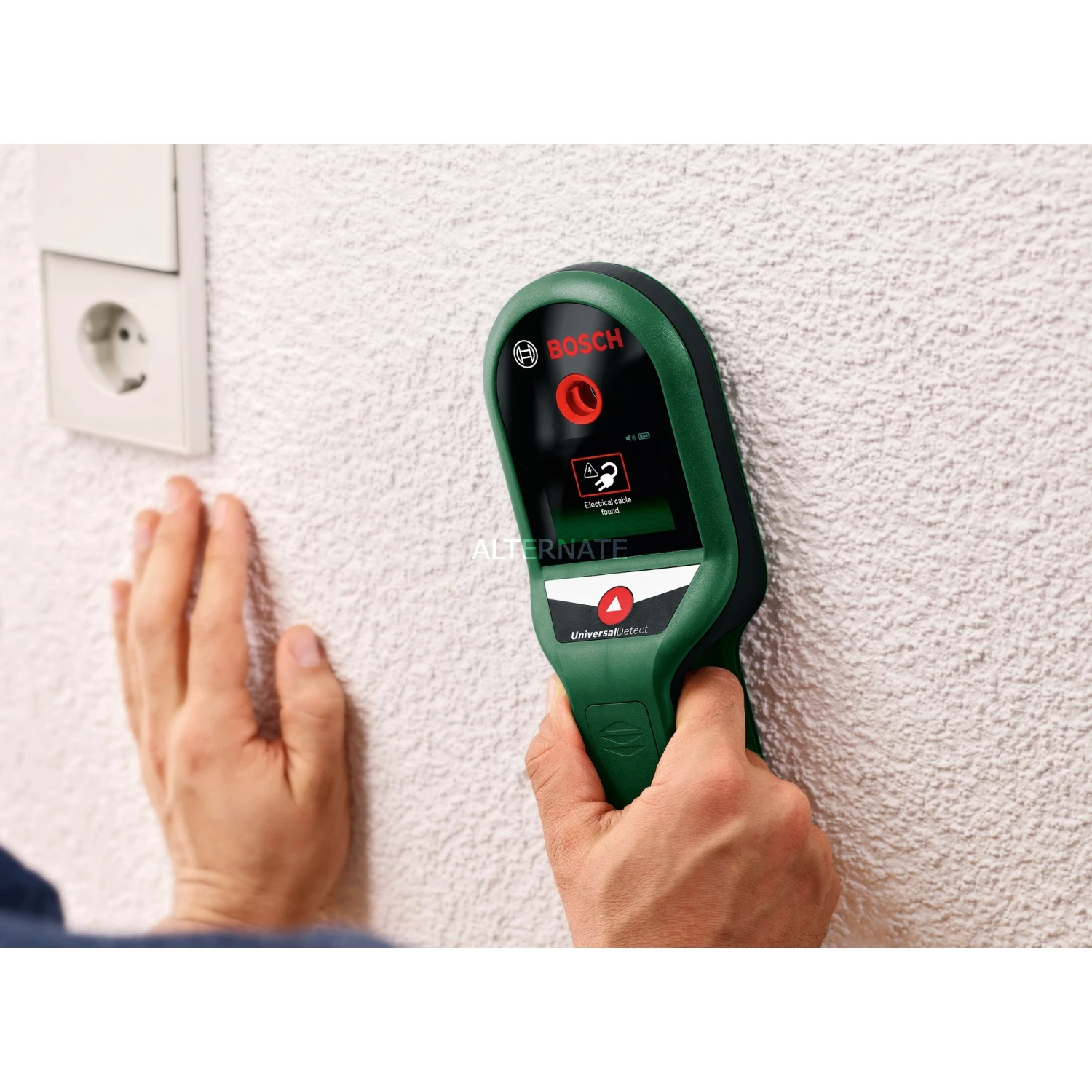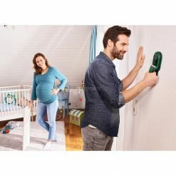 Das digitale Ortungsgerät UniversalDetect von Bosch ermöglicht schnelles und einfaches Abscannen von Wänden und Decken. Dabei findet der UniversalDetect Metallobjekte, z.B. Armierungseisen, stromführende Leitungen und Holz-Unterkonstruktionen in Trockenbauwänden und erlaubt sicheres Bohren beim Montieren von Bildern, Regalen oder Lampen. Das LED-Ampelsystem und die zuschaltbaren Warntöne signalisieren, wo besser nicht gebohrt werden sollte. Die Auto-Kalibrierung macht ihn sofort einsatzbereit. Die hilfreichen Animationen mit Schritt-für-Schritt-Anweisungen sorgen dabei für eine intuitive Bedienung. Das Markierungsloch in der Mitte des Messbereichs ermöglicht ein einfaches Markieren der gefundenen Stelle mit einem Stift, während der UniversalDetect an die Wand gehalten wird.
