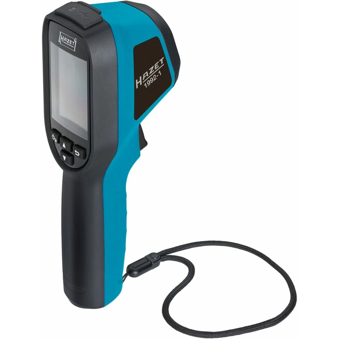 Die handliche Wärmebildkamera 1992-1 von HAZET eignet sich zur Gebäudediagnostik, zur Überprüfung von Elektroinstallationen, Sanitär-, Klima- und Heizungstechnik sowie bei KFZs zur Prüfung im Motorraum, von Bremsanlagen, Kühl- und Heizsystemen. Bis zu 150.000 Bilder können auf der mitgelieferten 8 GB Micro-SD-Karte gespeichert werden. Die Messgenauigkeit beträgt bei Umgebungstemperaturen von 15°C bis 35°C und Objekttemperaturen über 0°C ca. ±2°C. Der integrierte Akku bietet eine Laufzeit von ca. 8 Stunden und kann über den USB-Anschluss wieder aufgeladen werden.