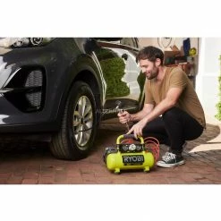 Der ONE+ Akku-Kompressor R18AC-0 von Ryobi ist ein mobiler, kabelloser Kompressor, der sich ideal z.B. zum Aufpumpen von Reifen eignet. Er kann einen Autoreifen in ca. 80 Sekunden füllen. Ein Verriegelungsregler dient zur einfachen Steuerung des Ausgangsdrucks, und eine Luftschlauchhülle aus Metall zur sicheren Aufbewahrung des Druckluftschlauchs. Durch das Ablassventil ist der Tank nach Gebrauch leicht und sicher zu entleeren. Ryobi IntelliCell überwacht jede Zelle des ONE+ Akkus, maximiert die Laufzeit je Akkuladung und erhöht die Lebensdauer. Das einzigartige Leistungsmanagement liefert optimale Leistung und Laufzeit für alle ONE+ Geräte und Anwendungen.
