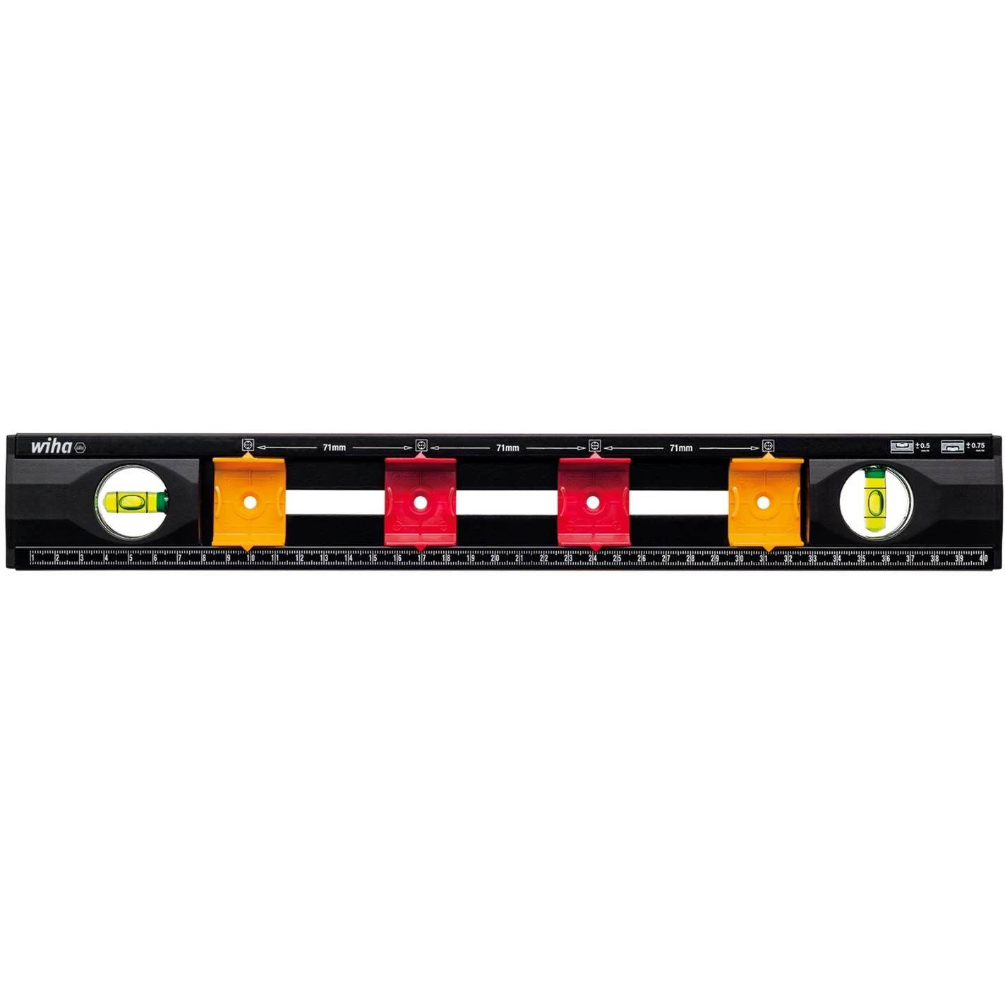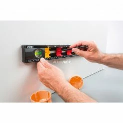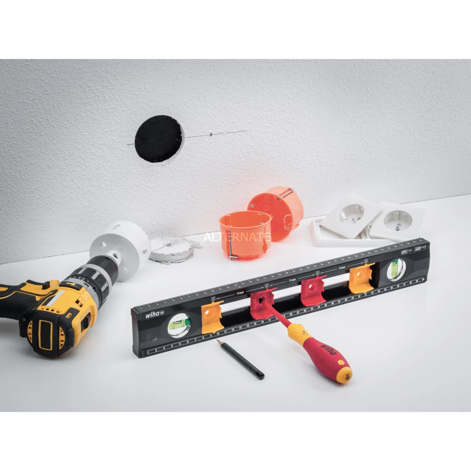 Die Elektriker Wasserwaage 42074 von Wiha ermöglicht selbst bei spitzem Blickwinkel eine perfekte Einsicht auf die beiden Libellen. Außerdem ermöglicht die Wasserwaage dank des durchgehenden Gehäuses ein unterbrechungsfreies Anzeichnen von Linien. Selbst bei Draufsicht wird mithilfe der raffiniert positionierten Skalen eine komfortable Bemaßung ermöglicht. Einen weiteren Vorteil bei der Elektroinstallation bieten die variablen Abstandsmarkierungen für bis zu vier Unterputzdosen. Dank der verschiebbaren Markierpunkte für Dosen kann die Elektriker Wasserwaage je nach Ländervorgabe an die jeweiligen Markierungsabstände angepasst und somit auch international eingesetzt werden. Mit ihrer kompakten Form ist die Wasserwaage außerdem perfekt für den mobilen Einsatz geeignet und passt bequem in einen Wiha Elektrikerkoffer.